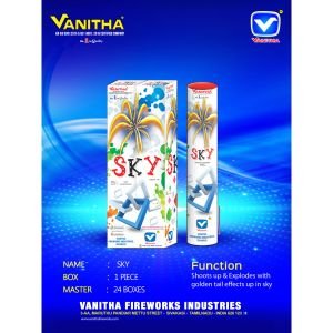 Celebrate diwali with a bang with our2.5 inch Sky E ( 1 Pcs ). This firework is sure to light up your Diwali celebrations with its dazzling display of colors and effects. It is made from the finest quality materials and is shipped directly from Sivakasi in Tamilnadu to Bihar by our company, Sivakasi Enterprises. With its vibrant colors and loud sound, this firework will be sure to make your Diwali night even more special. So don’t wait any longer, add this product to your enquiry cart or contact us using WhatsApp or phone to order now!
